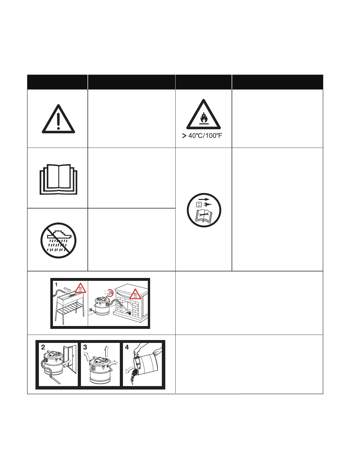 by sifting through the ashes with a metal implement before using the equipment. The cold ashes emit no further perceptible heat