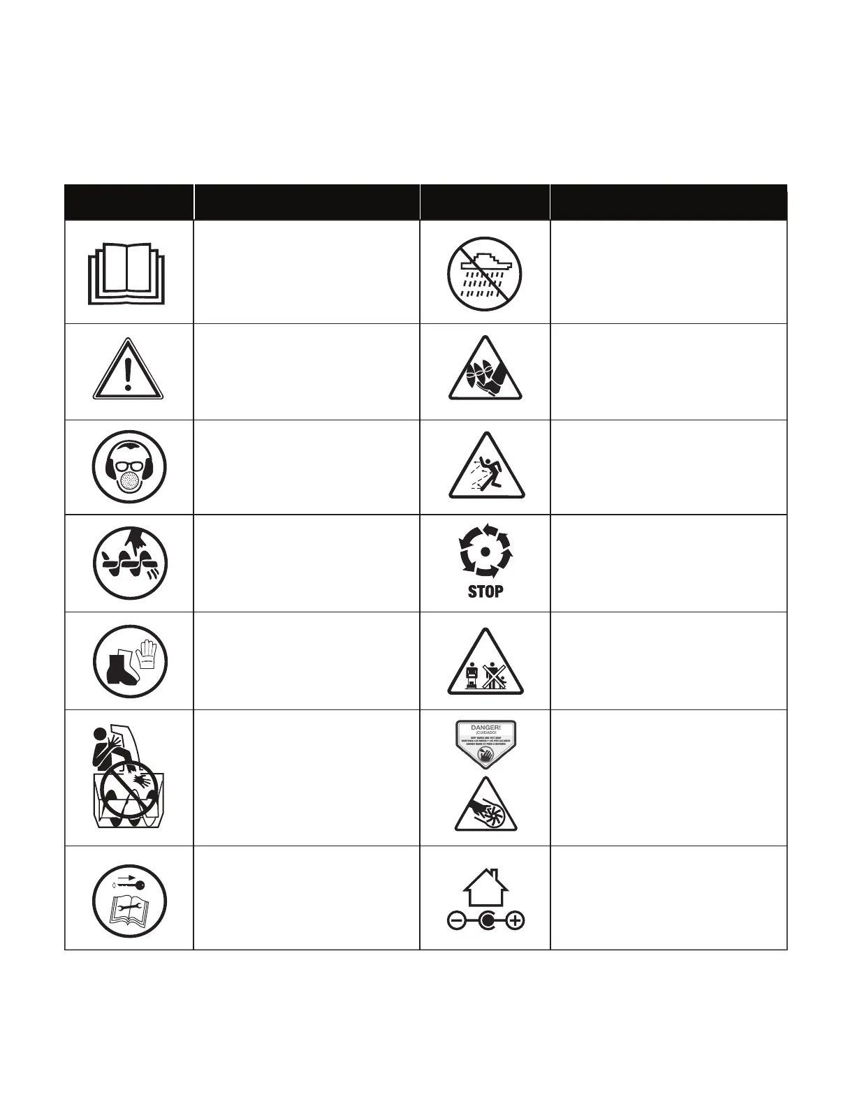 The following table depicts and describes safety symbols that may appear on this product. Read, understand and follow all