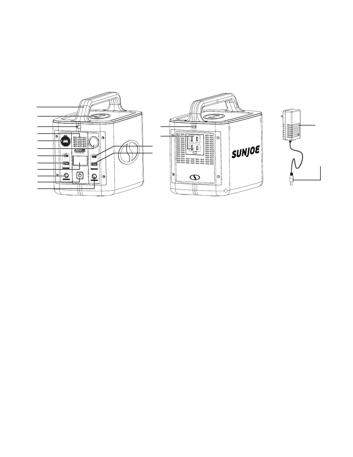 below to the portable power station in order to familiarize yourself with the location of the various controls and adjustments. Save