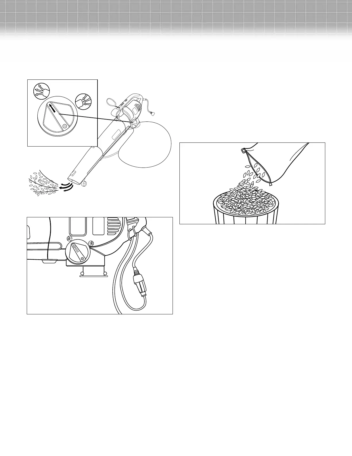 • Do not vacuum large volumes of leaf material at one time