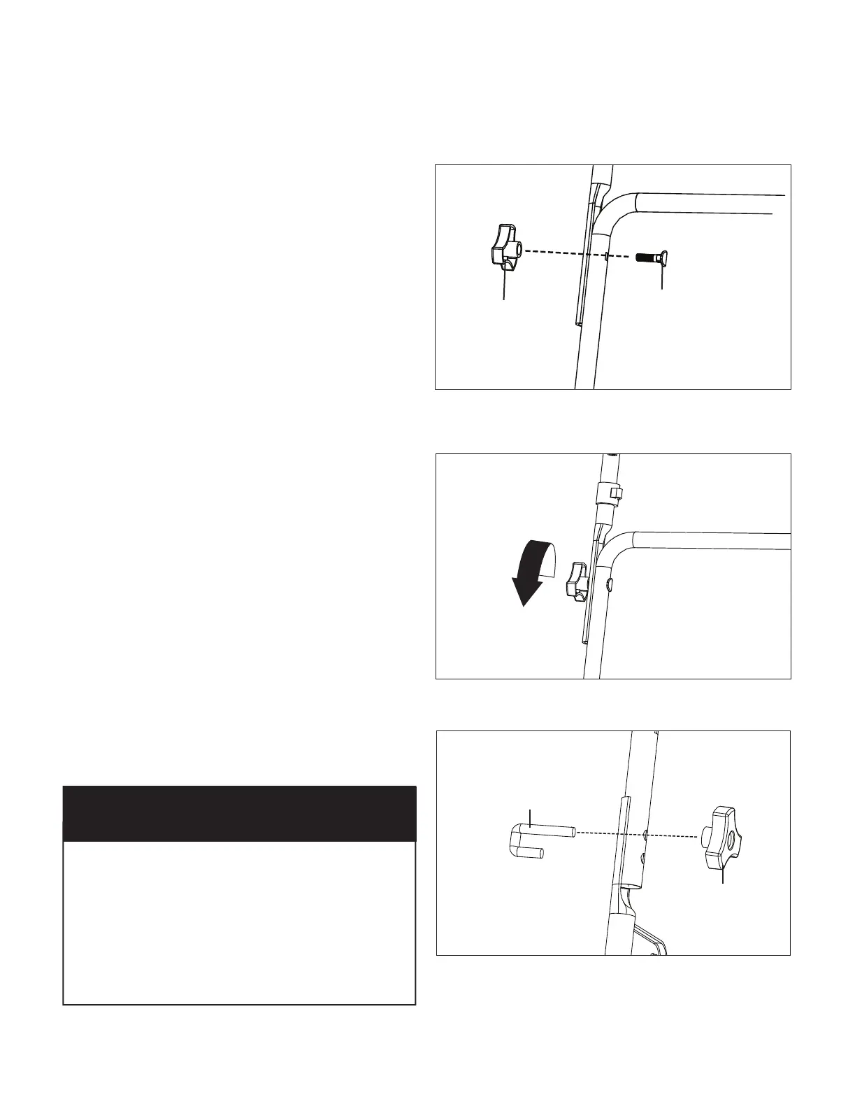 J-bolts. Install the knobs on the inside of the lower handle,