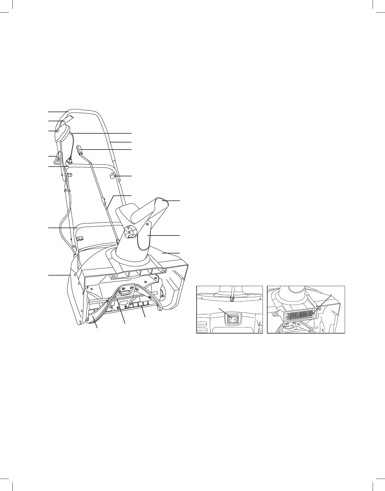 Read the owner’s manual and safety rules carefully before operating your electric snow thrower. Compare the illustration