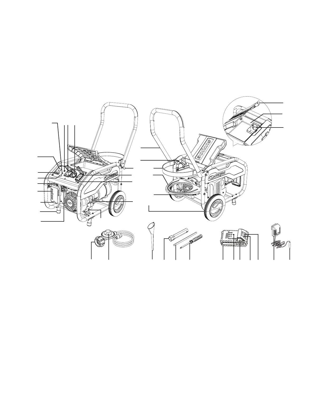 below to the propane generator in order to familiarize yourself with the location of the various controls and adjustments. Save this