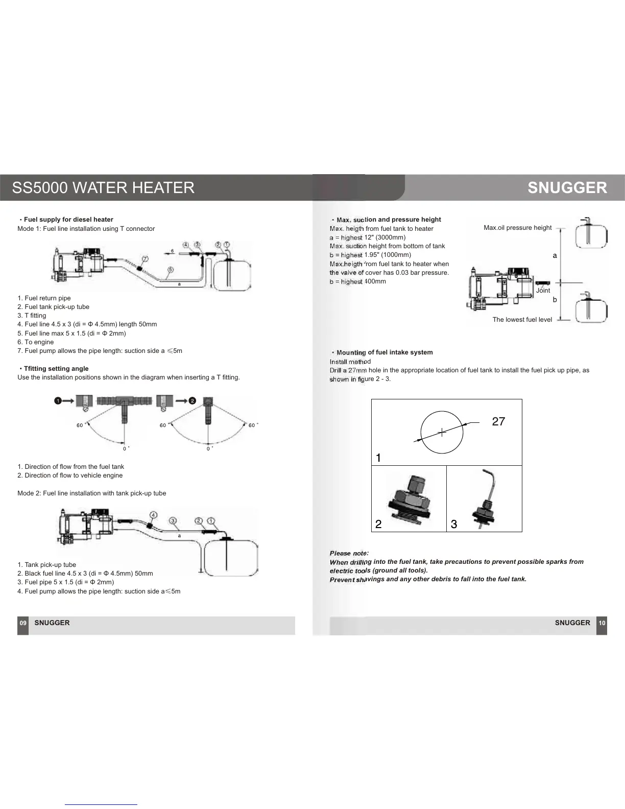 Drill a 27mm hole in the appropriate location of fuel tank to install the fuel pick up pipe, as