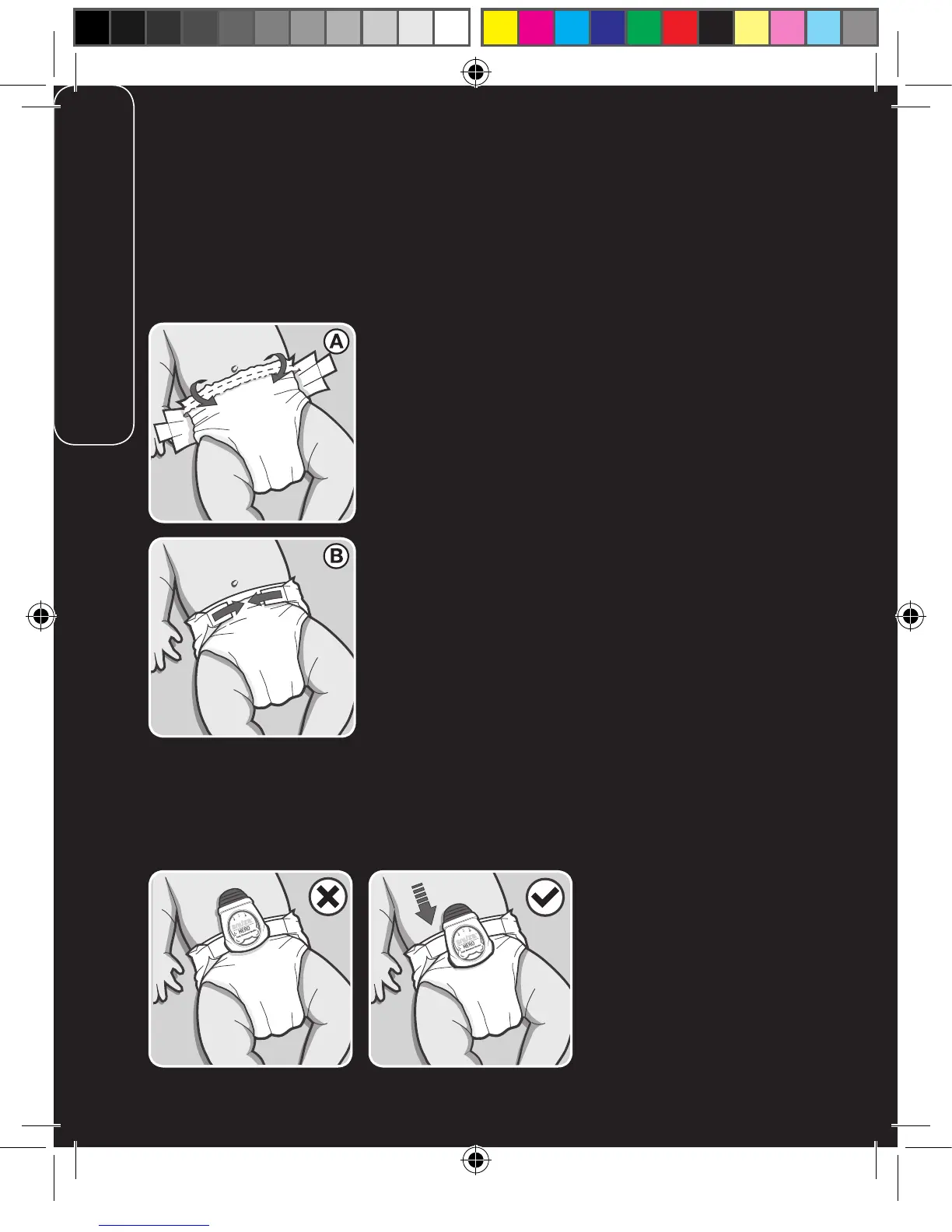 Firmly clip Hero onto the folded diaper waistband, using the full