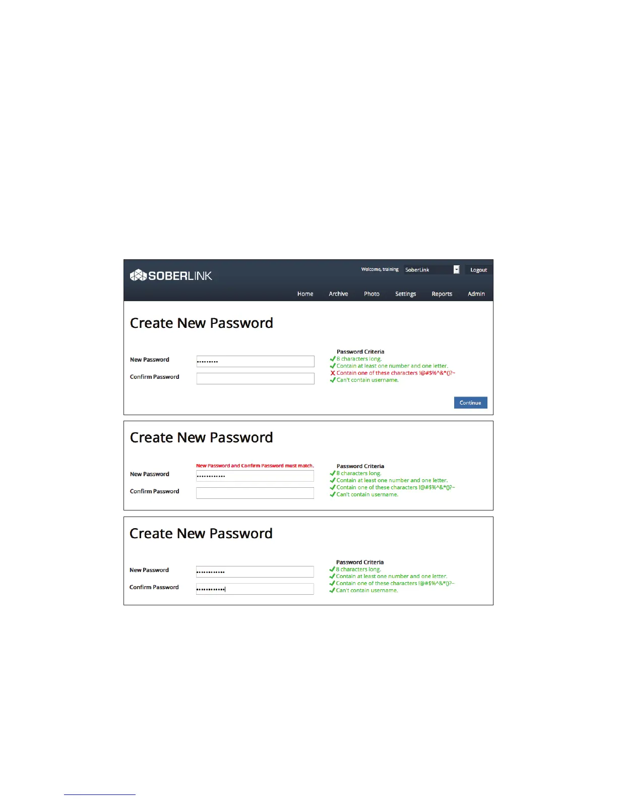 When creating a new password, the criteria text will change according to whether or not it has been satised.