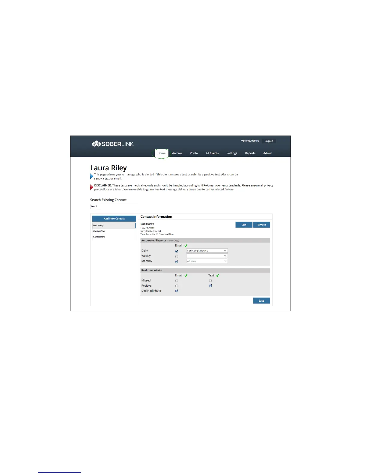 • The Alerts Page allows a contact to sign up for Real-time text or email Alerts based on