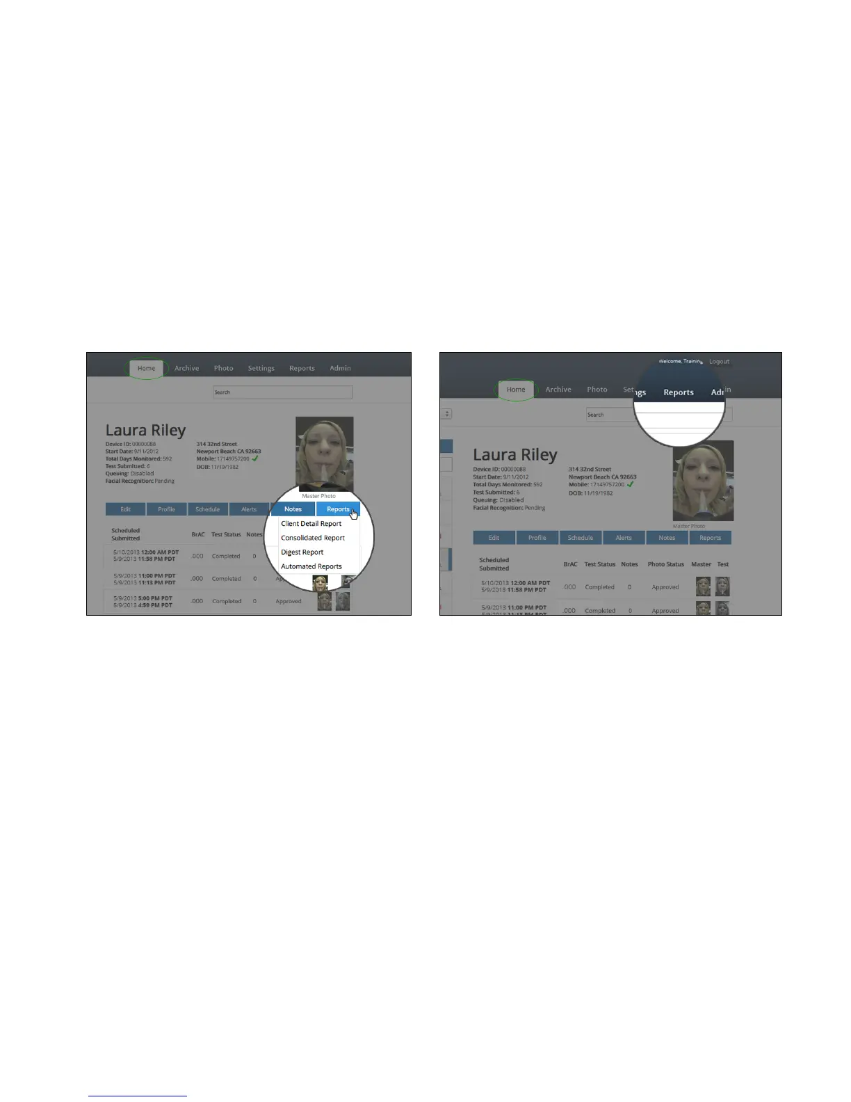 Client Detail Report - shows a test by test list of testing history for one client
