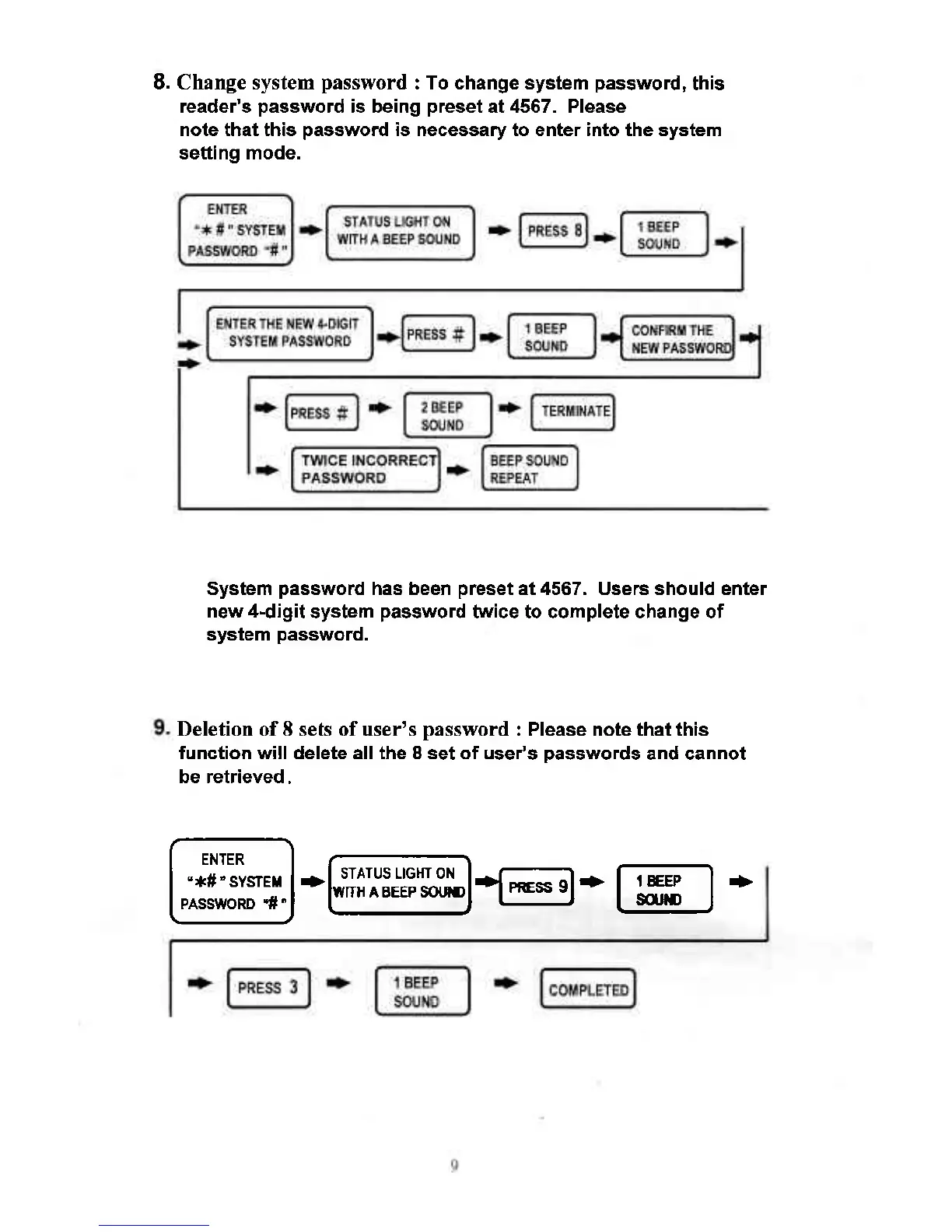 Soca ST-320 - CHANGING SYSTEM PASSWORD (COMMAND); DELETION OF 8 SETS OF USERS PASSWORDS
