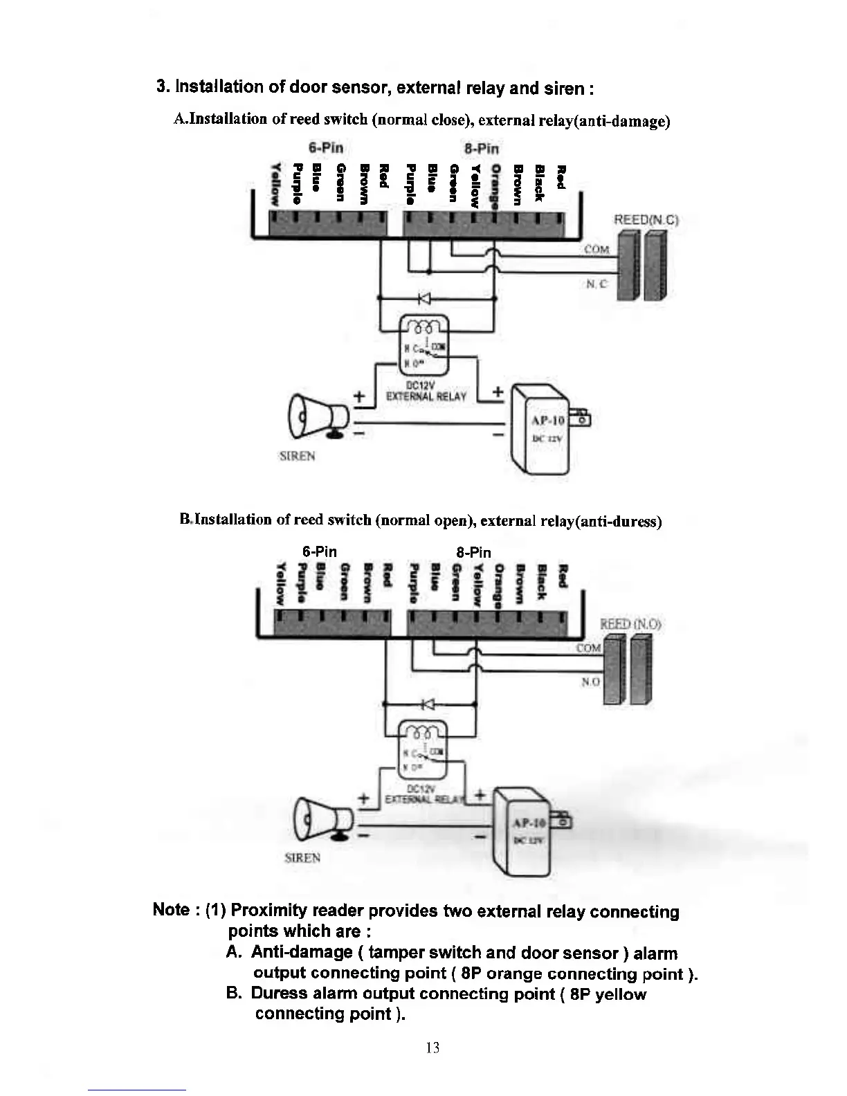 Soca ST-320 - INSTALLATION OF DOOR SENSOR, EXTERNAL RELAY AND SIREN