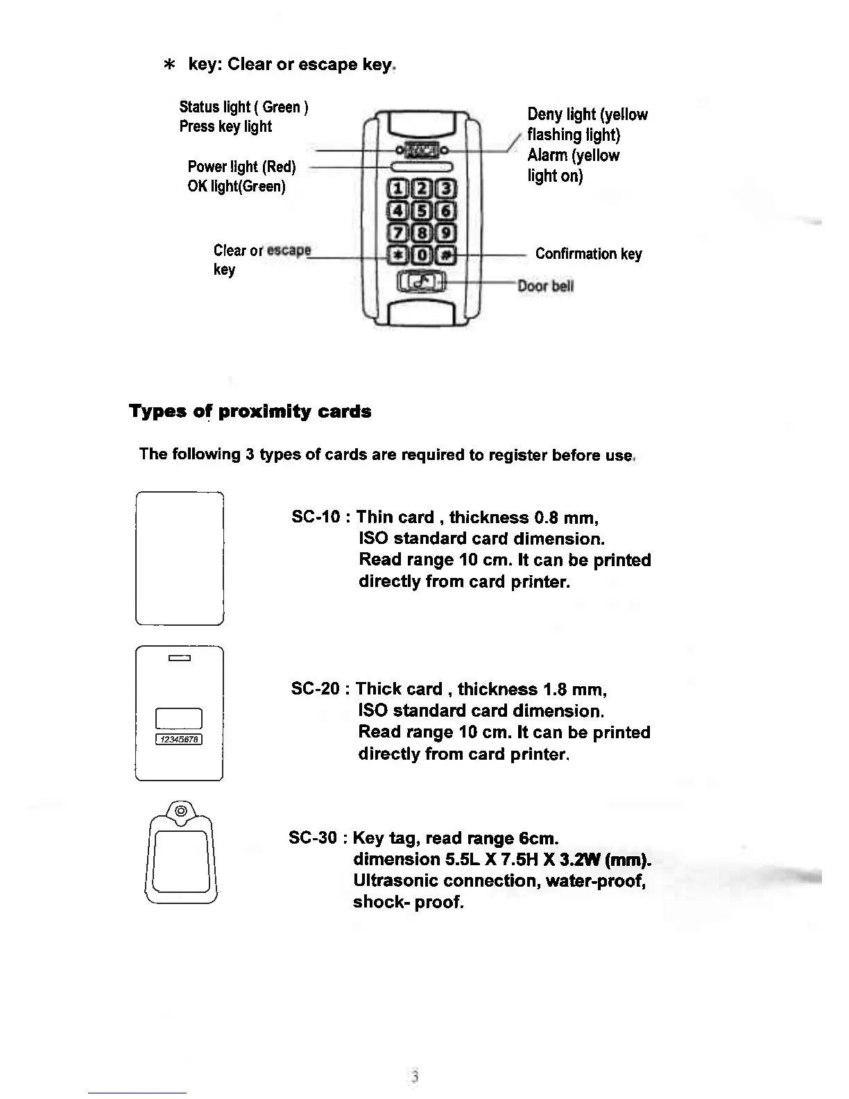 Soca ST-320 - FRONT PANEL; TYPES OF PROXIMITY CARDS