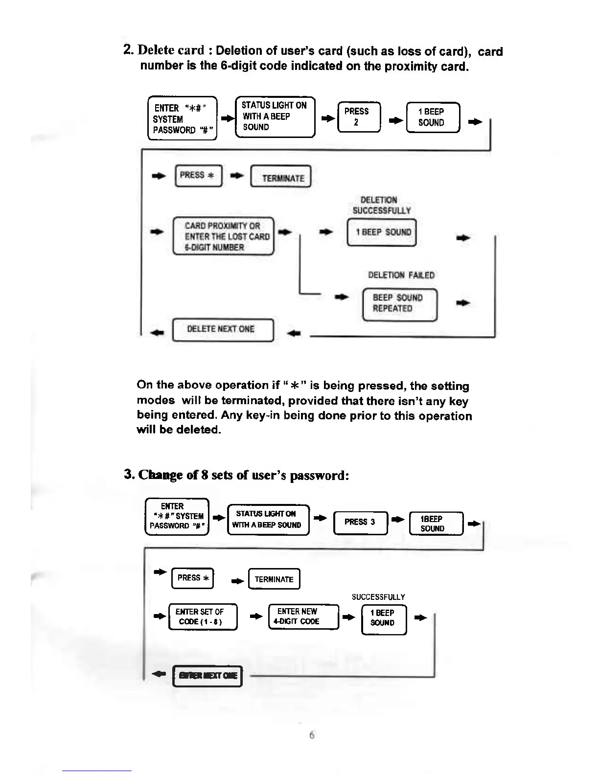Soca ST-320 - DELETION AND LOSS OF CARD (DELETE ONE CARD); CHANGE OF 8 SETS OF USERS PASSWORDS