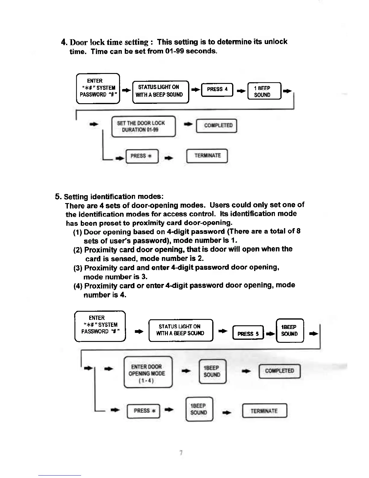 Soca ST-320 - DOOR LOCK TIME SETTING (SHUNT TIME); SETTING IDENTIFICATION MODES