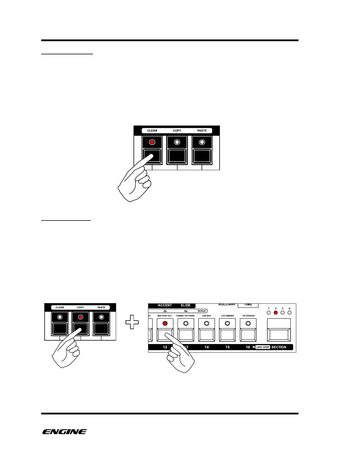 or transmitting via MIDI system exclusive. Pattern copy can also be used to copy patterns