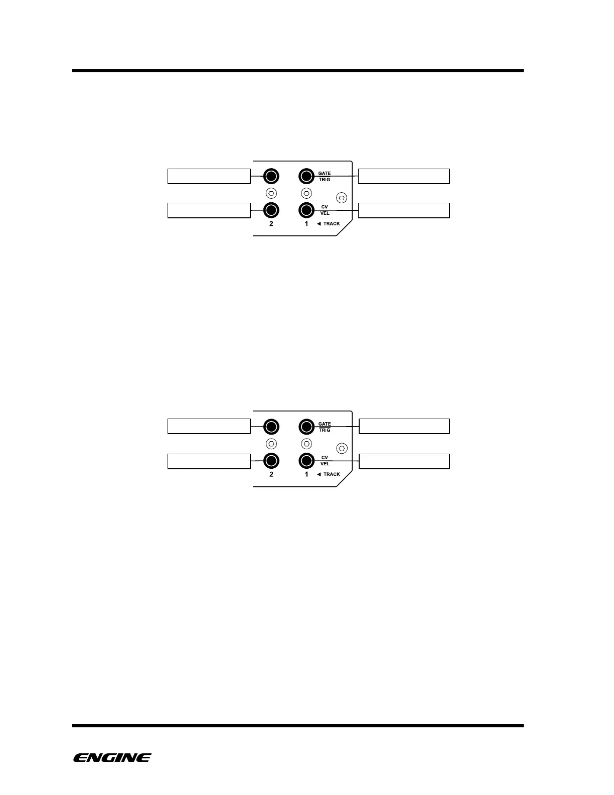 produce gate signals from the GATE/TRIG outputs and control voltages from the CV/VEL