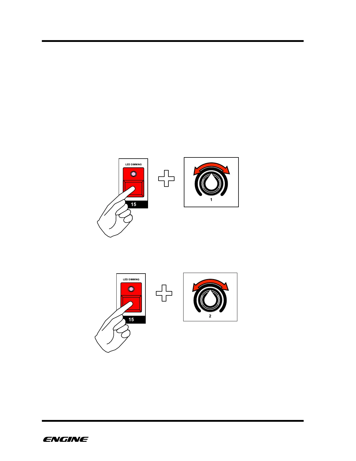 To adjust the relative dim LED level separately, rotate control knob 2.