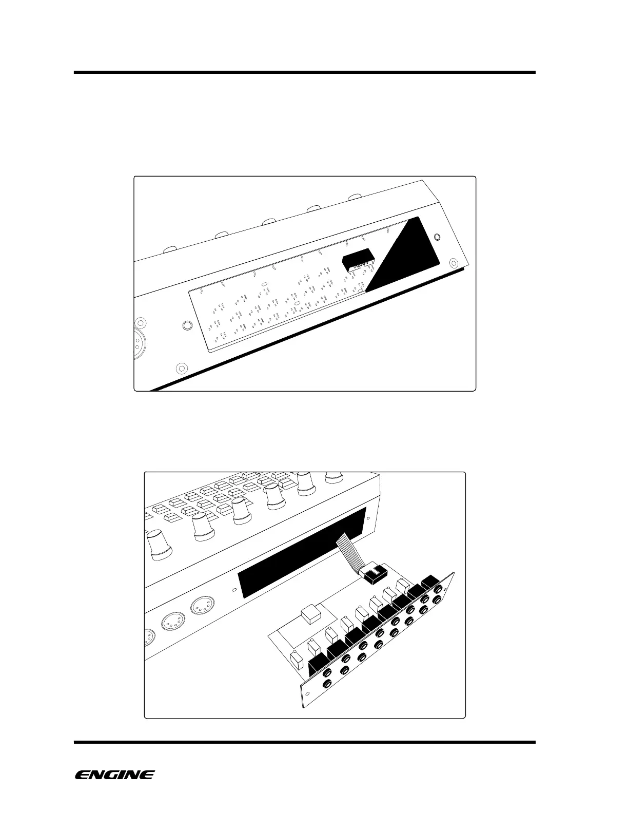 After plugging in the ribbon cable, carefully slide the CV expansion board into the Engine