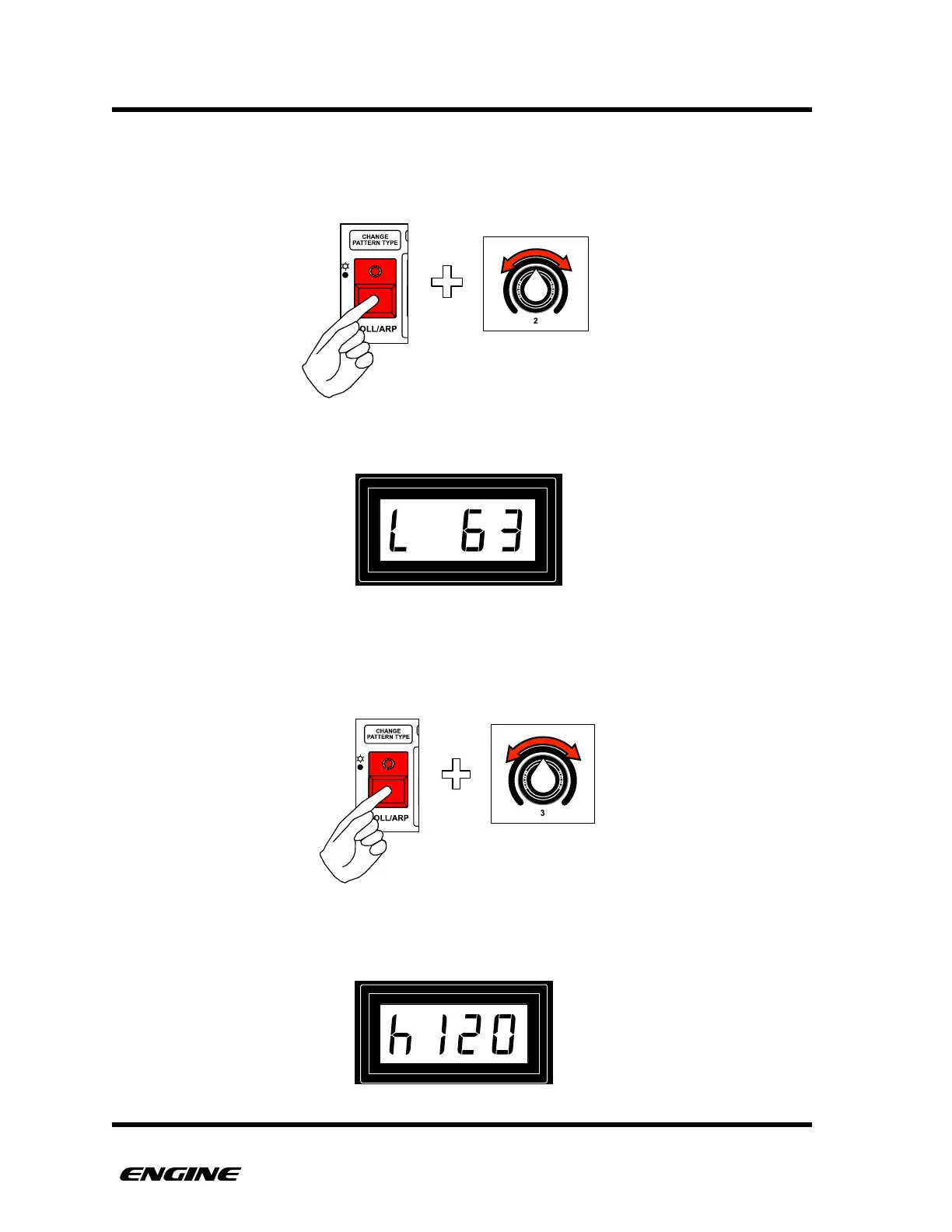 MODE, press and hold the CHANGE PATTERN TYPE (roll/arp) button, then rotate control