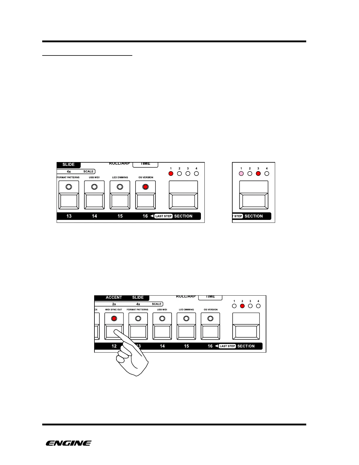 The last step of the pattern is shown on the pattern step LEDs if the last step is within the