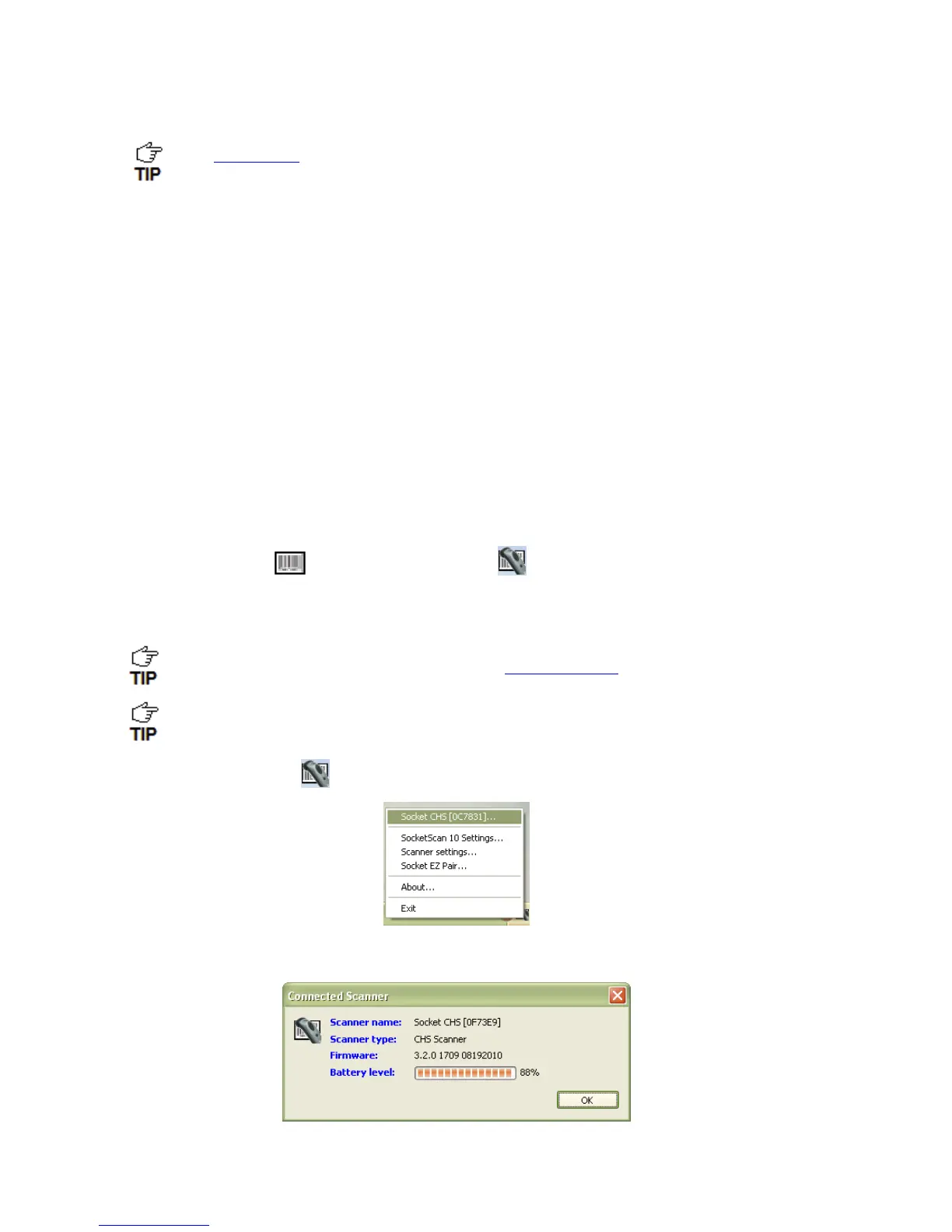 When SocketScan 10 is running, an icon that indicates the CHS connection status will appear in