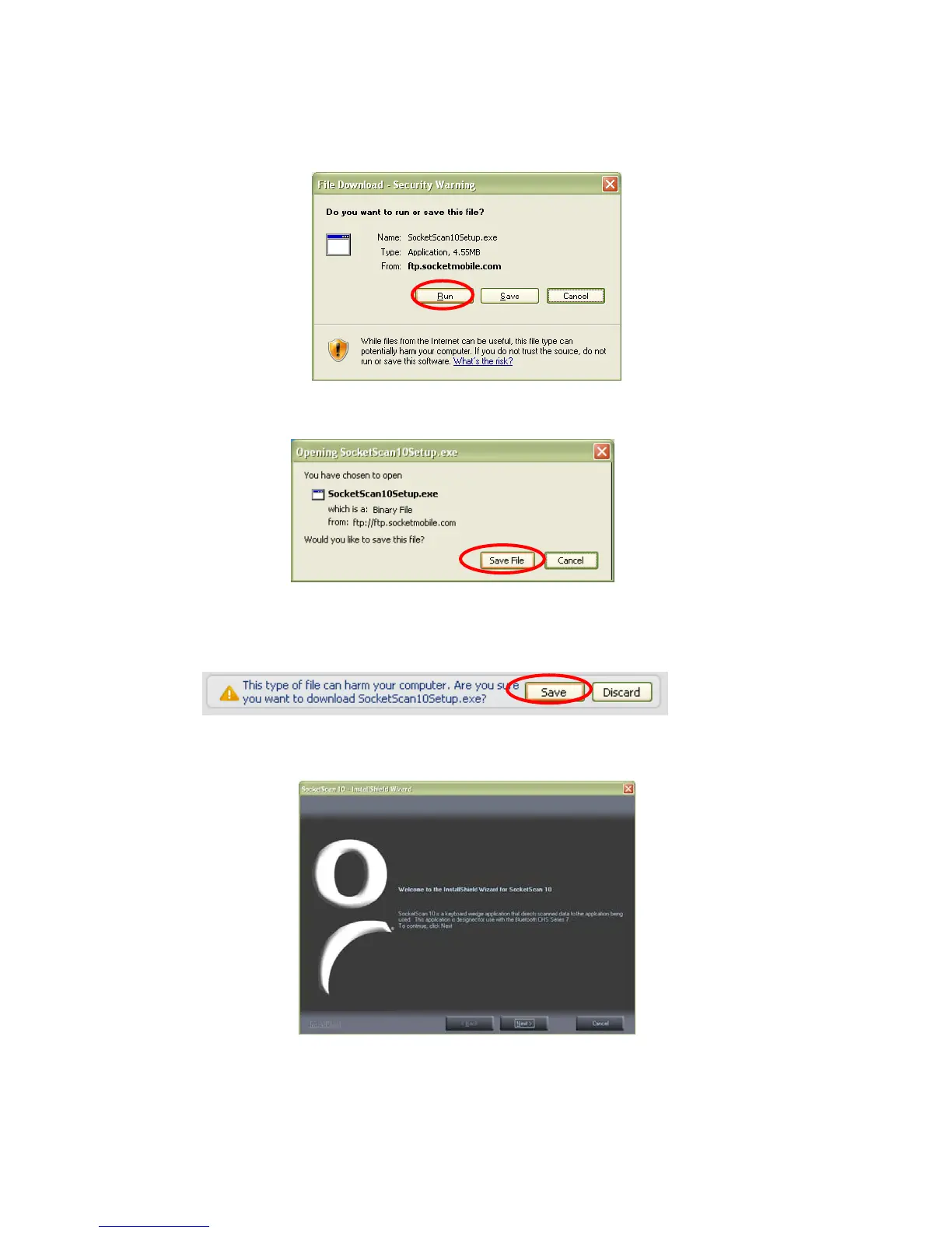 SocketScan10Setup.exe file. In the Security Warning screen, click Run.