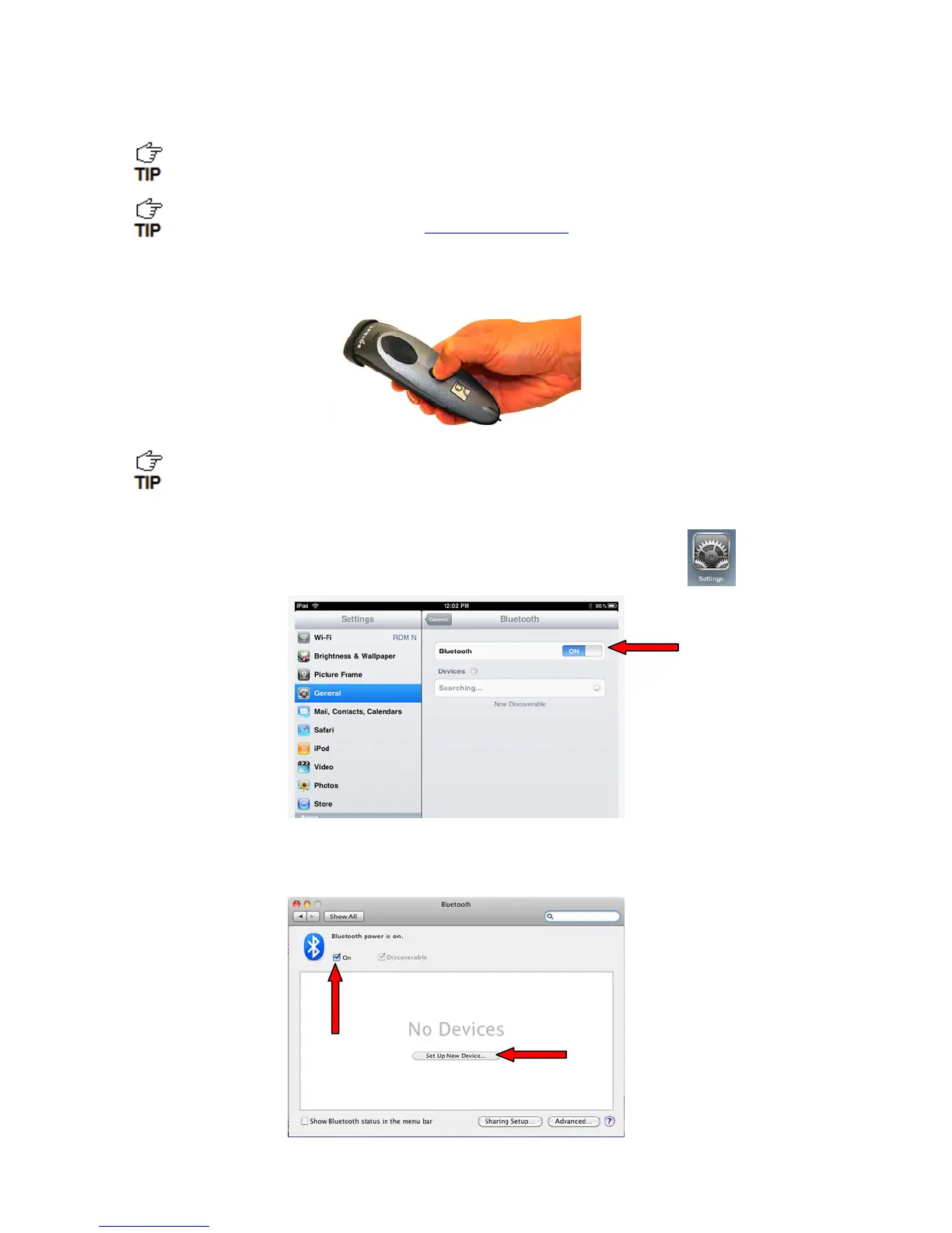 • iOS: Tap Settings | General | Bluetooth. Turn on Bluetooth.