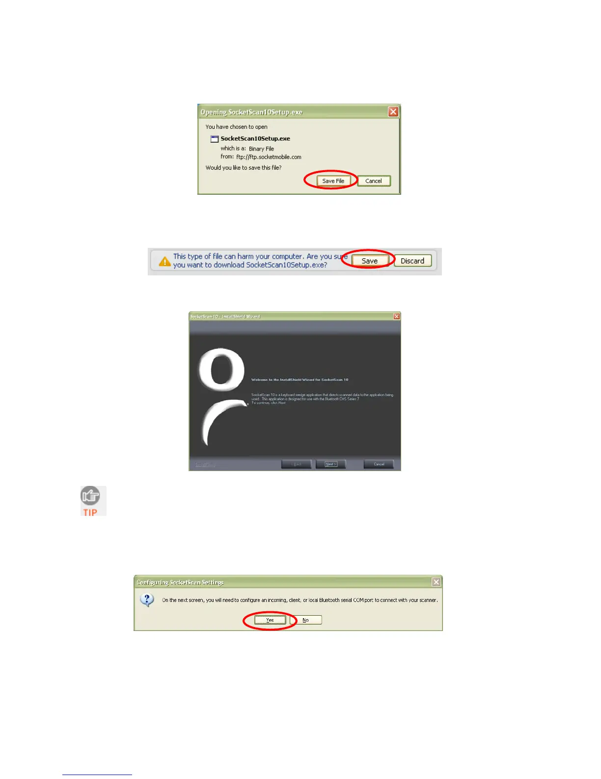 SocketScan10Setup.exe file. In the warning screen, click OK.
