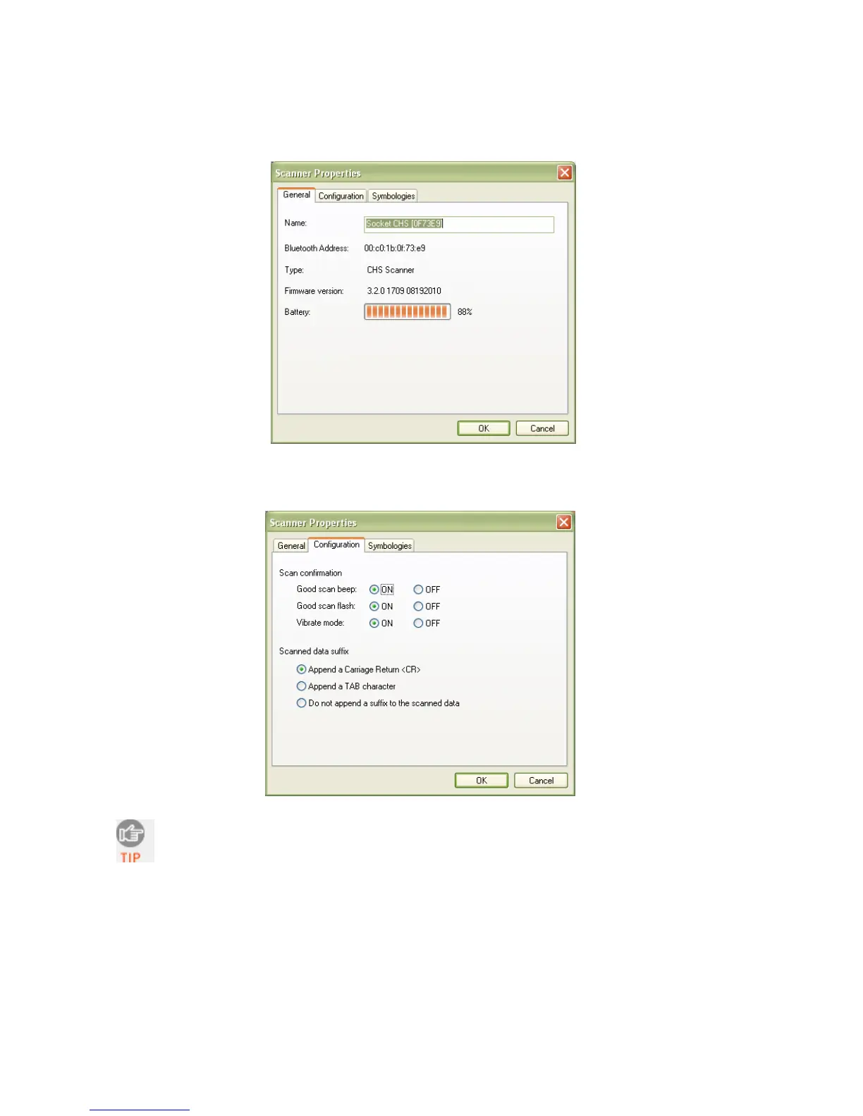 6. Click on the Configuration tab. If desired, modify how the CHS confirms a good scan