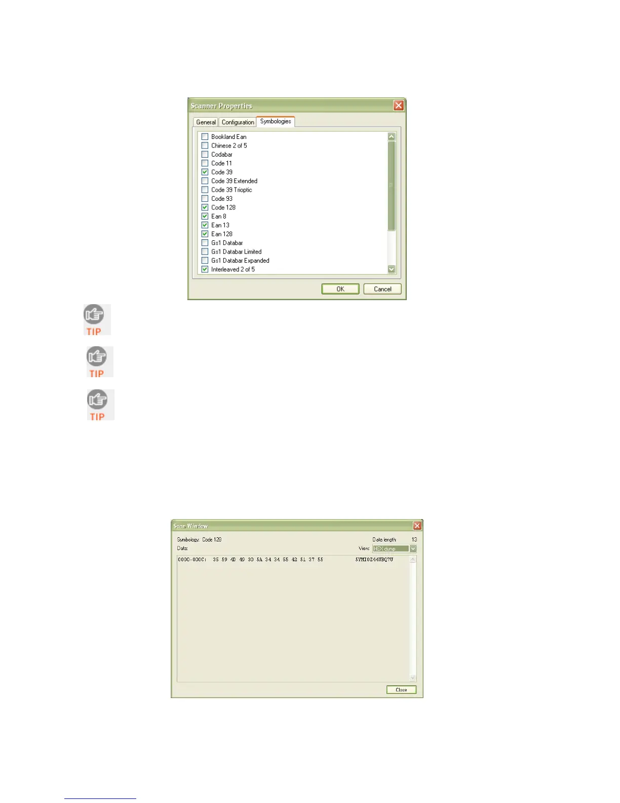 10. After testing a barcode, click Close. Click OK to exit Scanner Settings. The CHS will beep