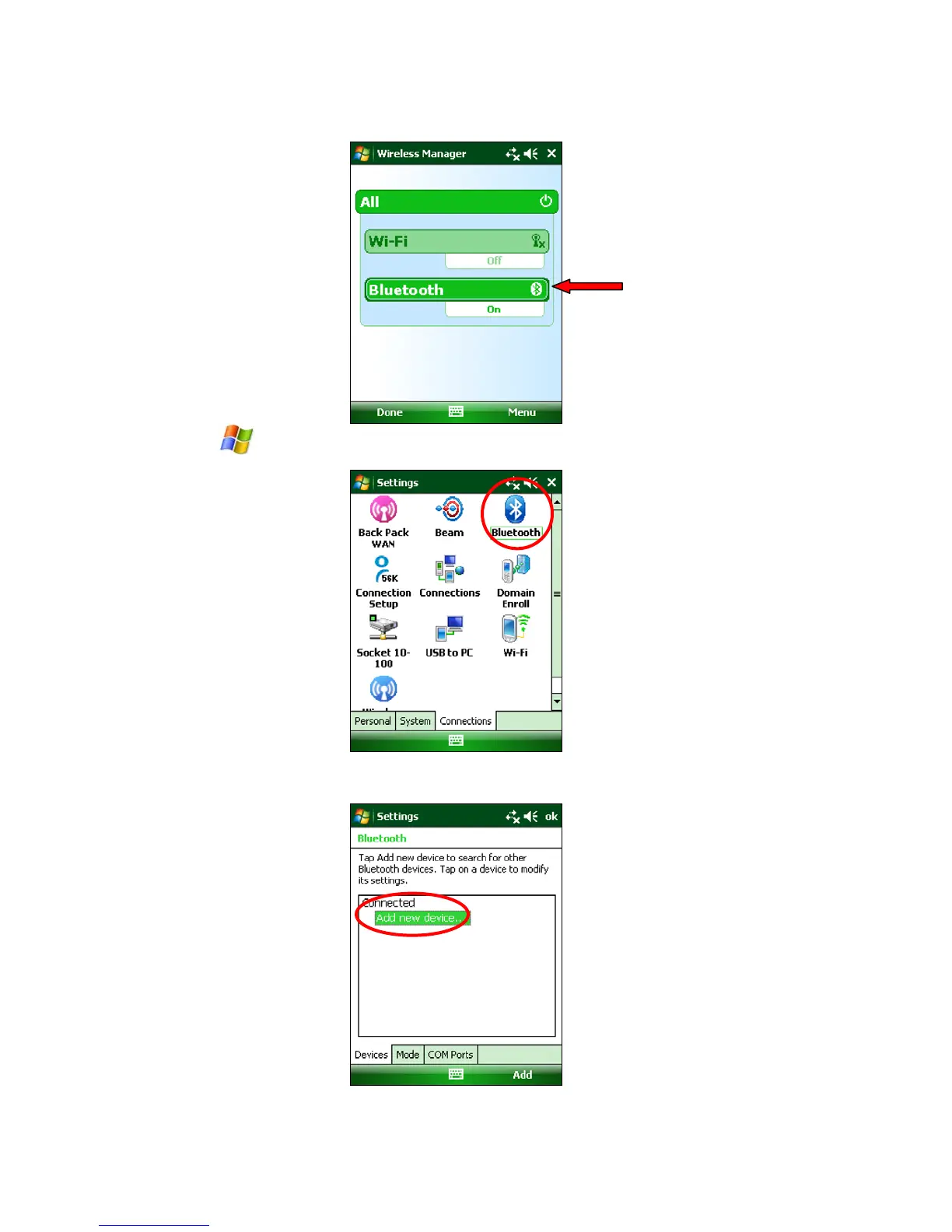 6. In the Bluetooth utility, tap Add new device… Alternatively, tap Add at the bottom of