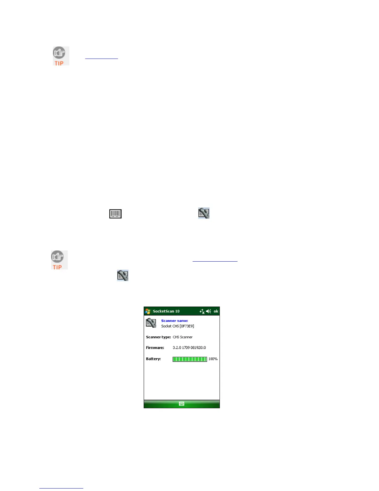 When SocketScan 10 is running, an icon that indicates the CHS connection status will appear in