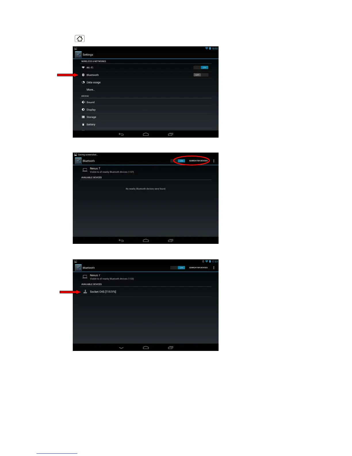 4. Make sure Bluetooth is on. Touch Search for devices.