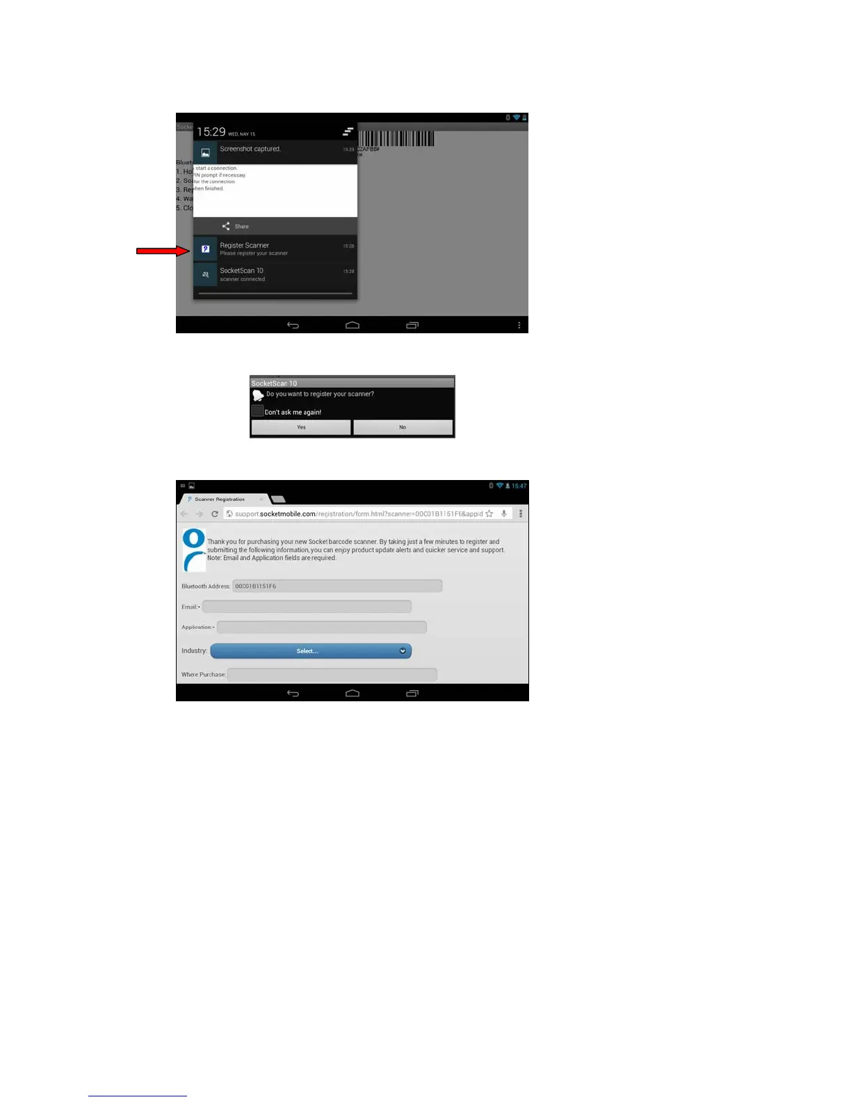 16. In the notifications list, touch Register Scanner to open the scanner registration software.