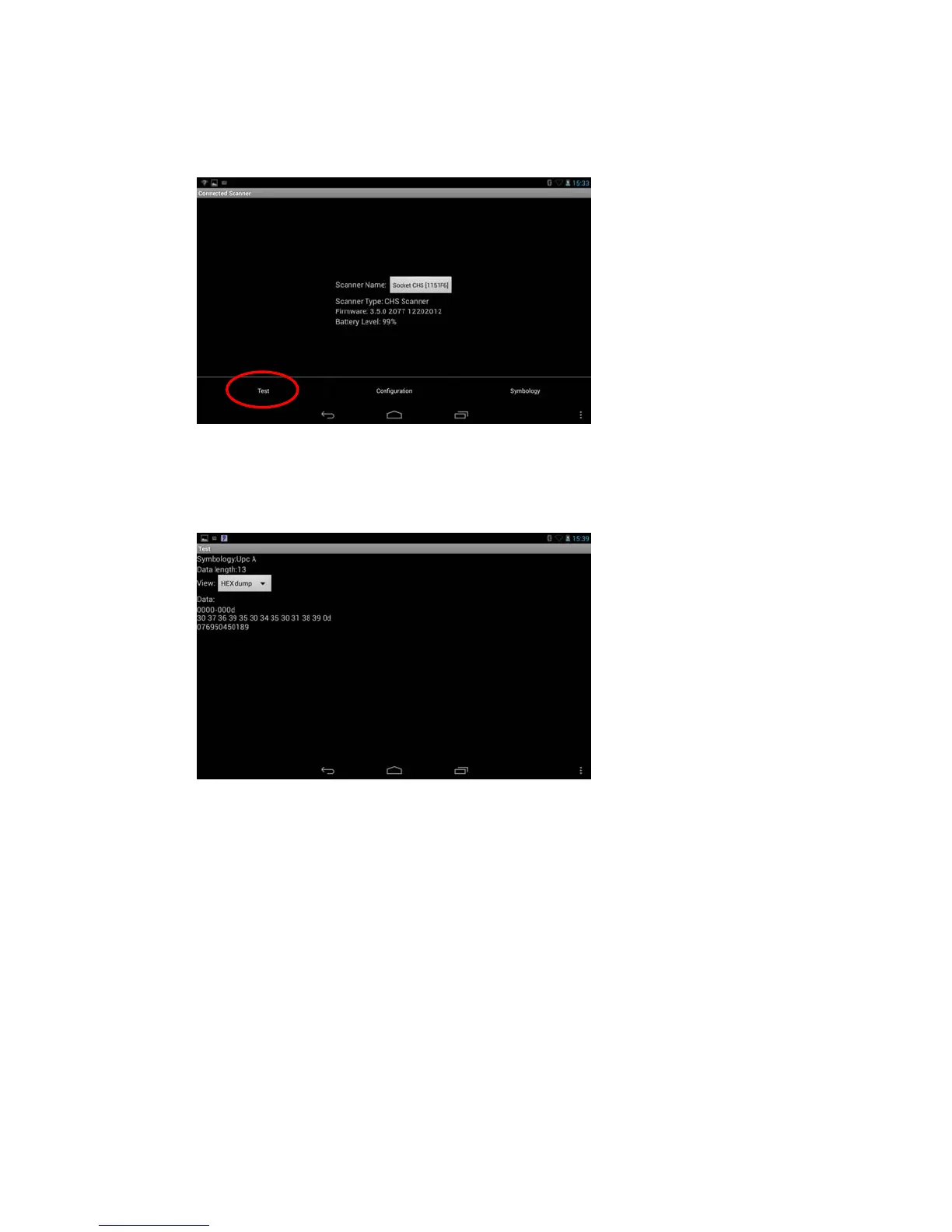 3. Scan a barcode. The Scan Window will report the barcode’s symbology (barcode type),