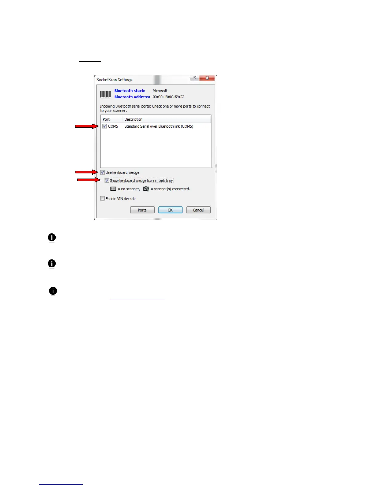 like to add one. Also, if SocketScan Settings lists multiple COM ports, you can