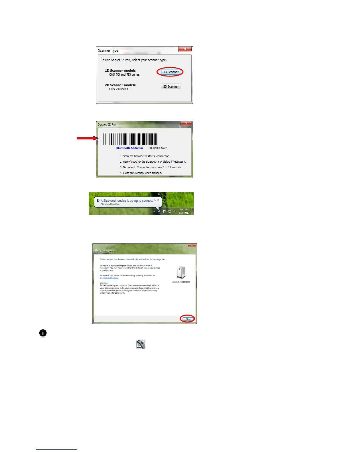 7. Scan the barcode on your screen. The CHS will beep 3 times. Click X to close Socket EZ Pair.