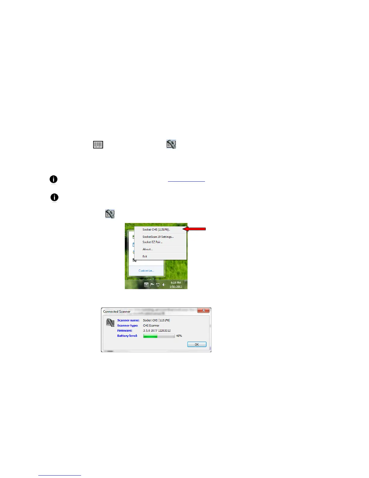 When SocketScan 10 is running, an icon that indicates the CHS connection status will appear