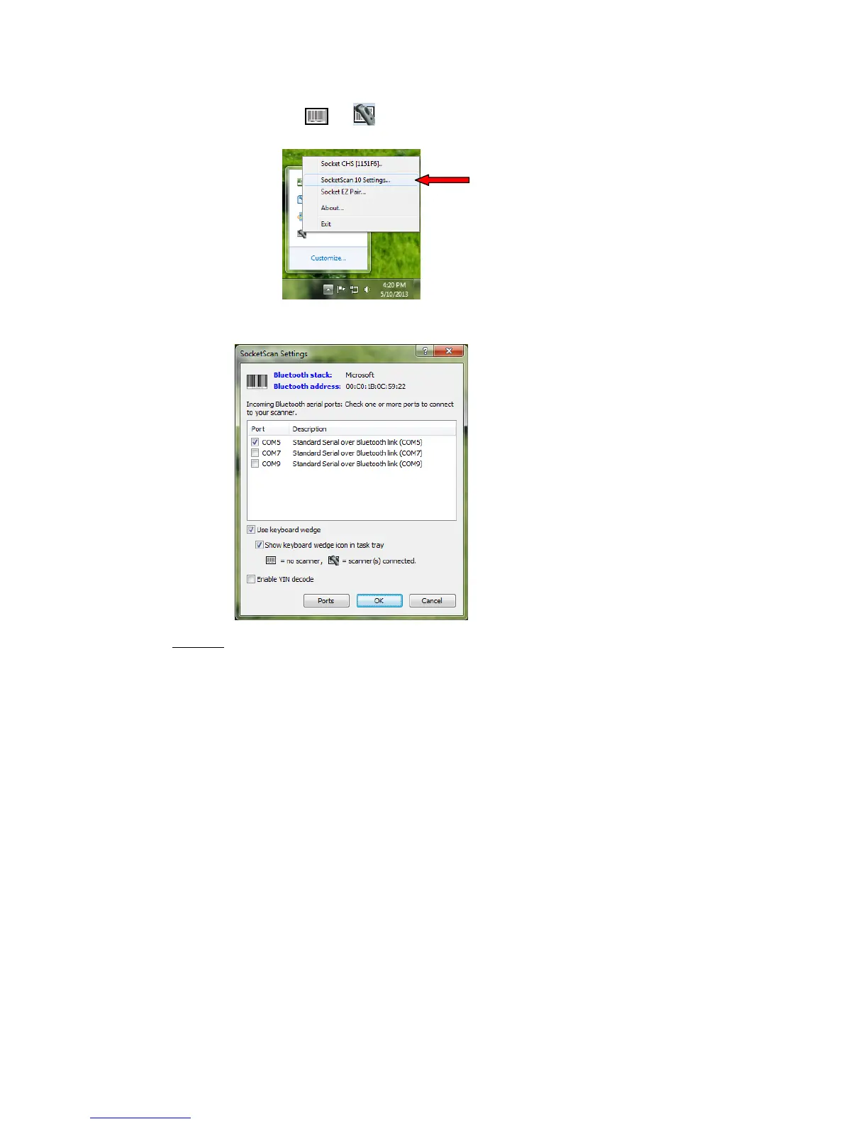 o If a suitable port is not listed in SocketScan 10 Settings, click Ports to use your