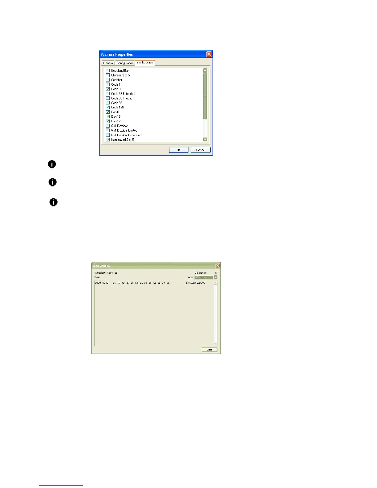 10. After testing a barcode, click Close. Click OK to exit Scanner Settings. The CHS will