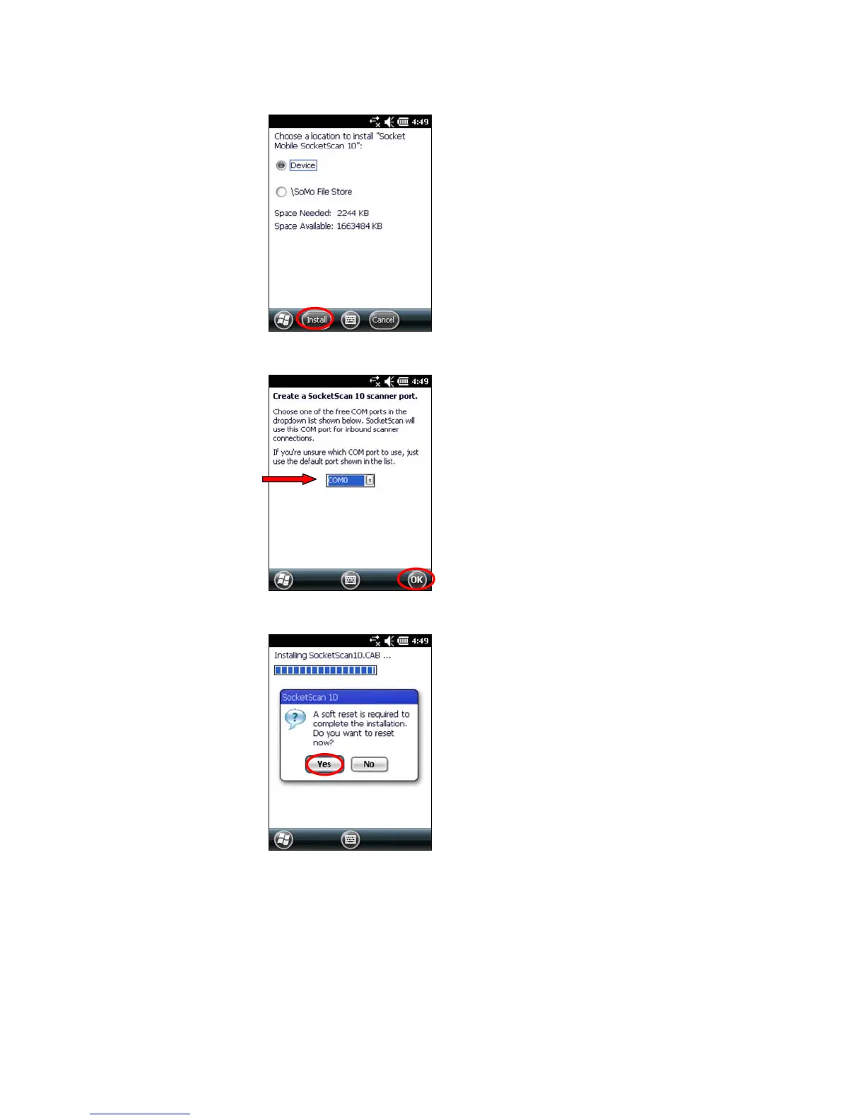 4. Select an available Bluetooth COM port for the inbound scanner connection. Tap OK.
