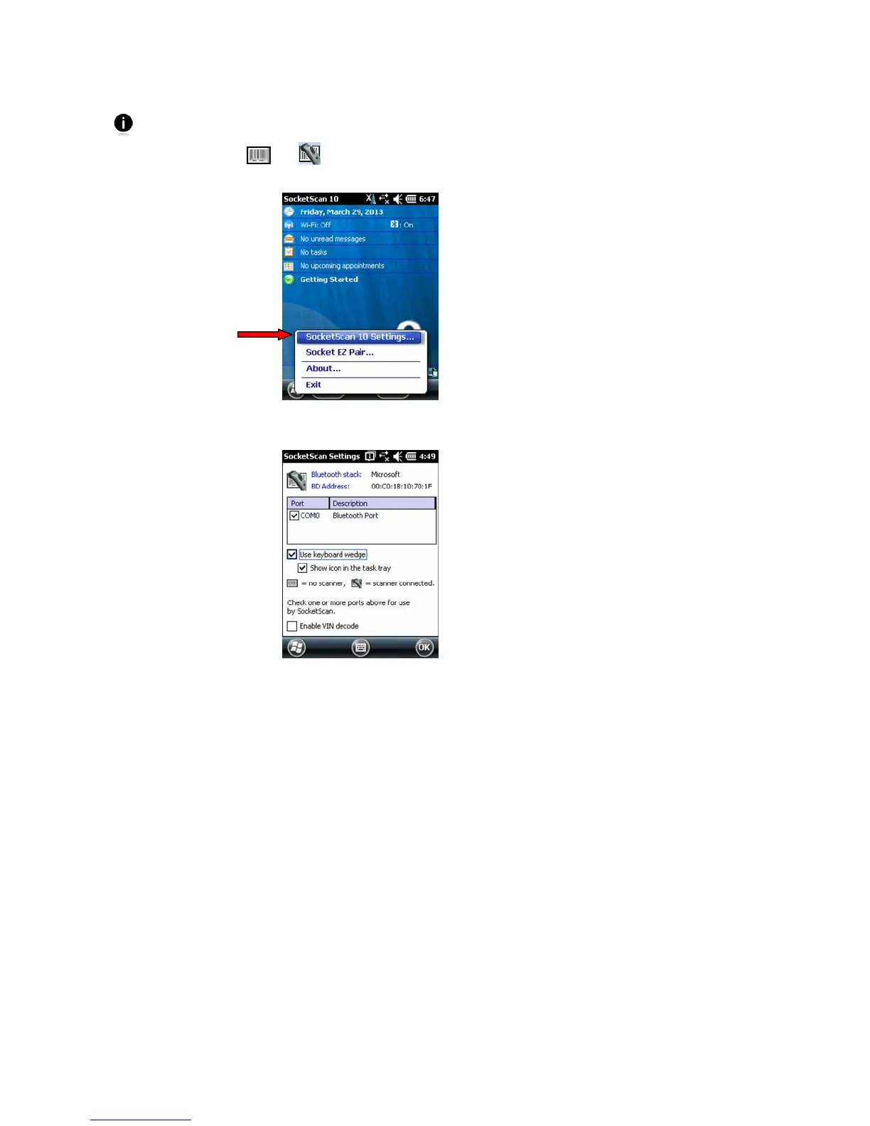 Port: Select the incoming Bluetooth serial COM port that you would like SocketScan to