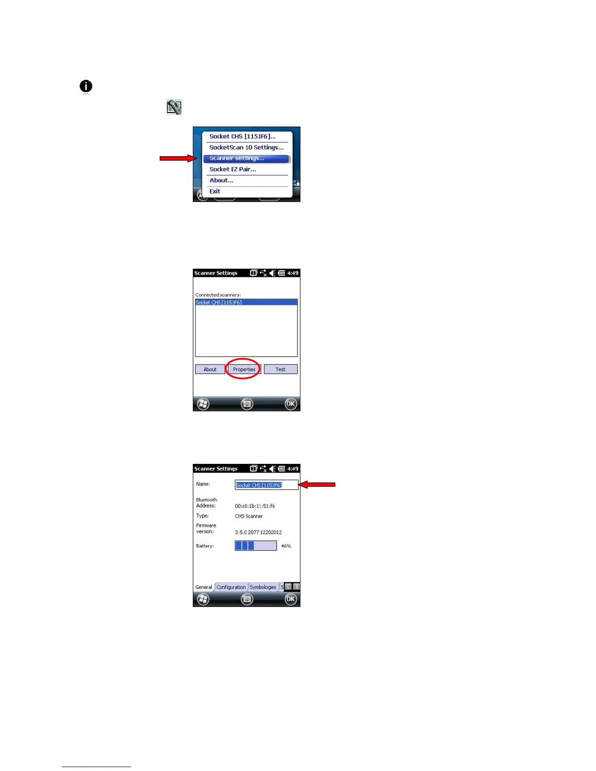 You can access Scanner Settings only when the CHS is connected to your PDA.