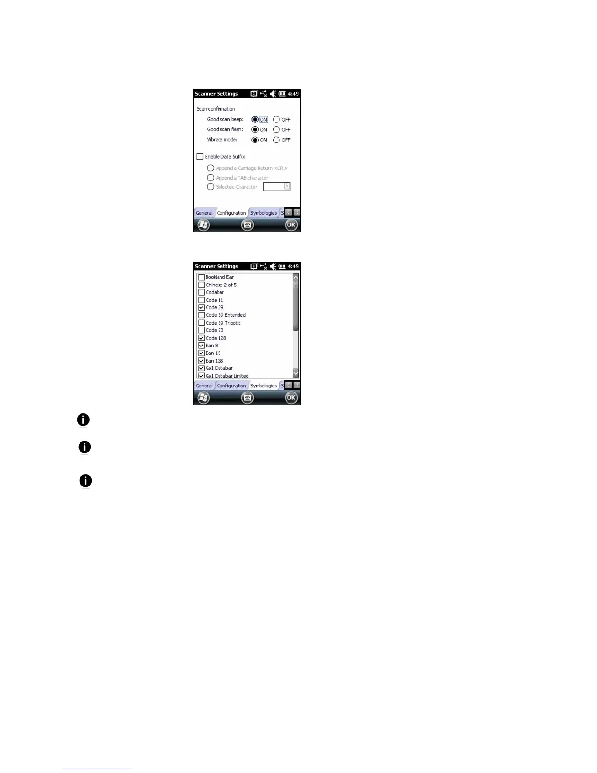 6. Tap on the Symbologies tab to modify which types of barcodes the CHS will be able