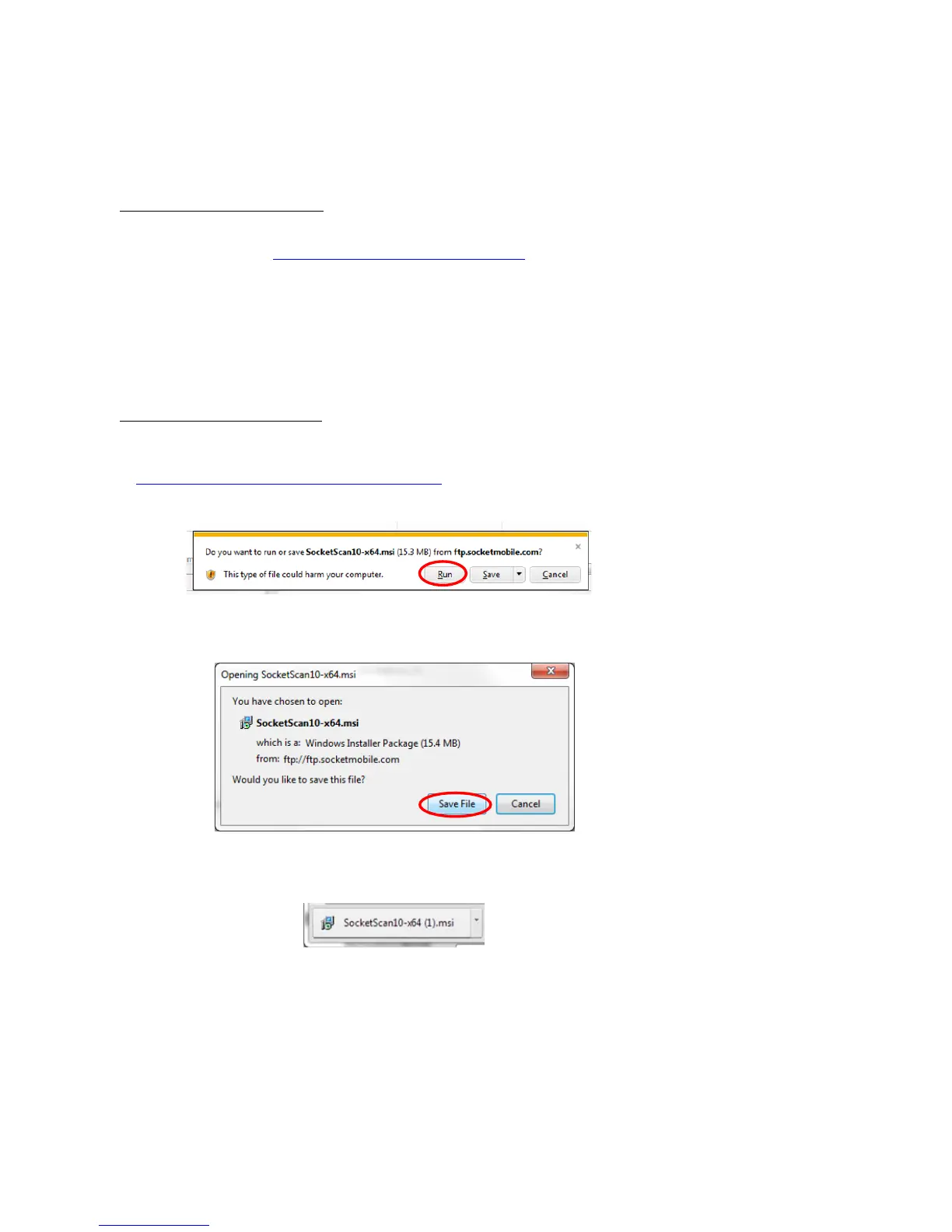 Firefox: Click Save File. In the Downloads list, double-click on the SocketScan10-x…msi file.