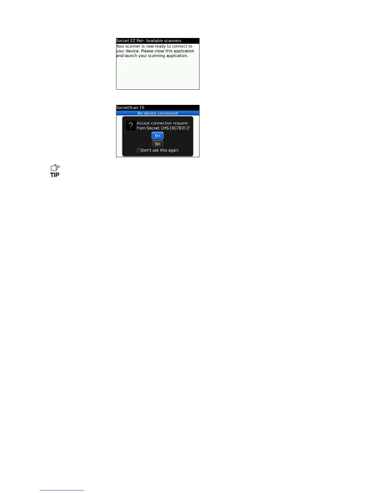 14. SocketScan 10 will try to connect to the CHS. If asked to confirm, click Yes.