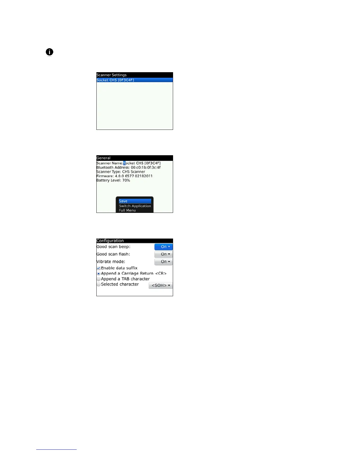 1. In SocketScan Settings, you can access Scanner Info by clicking on the main screen.