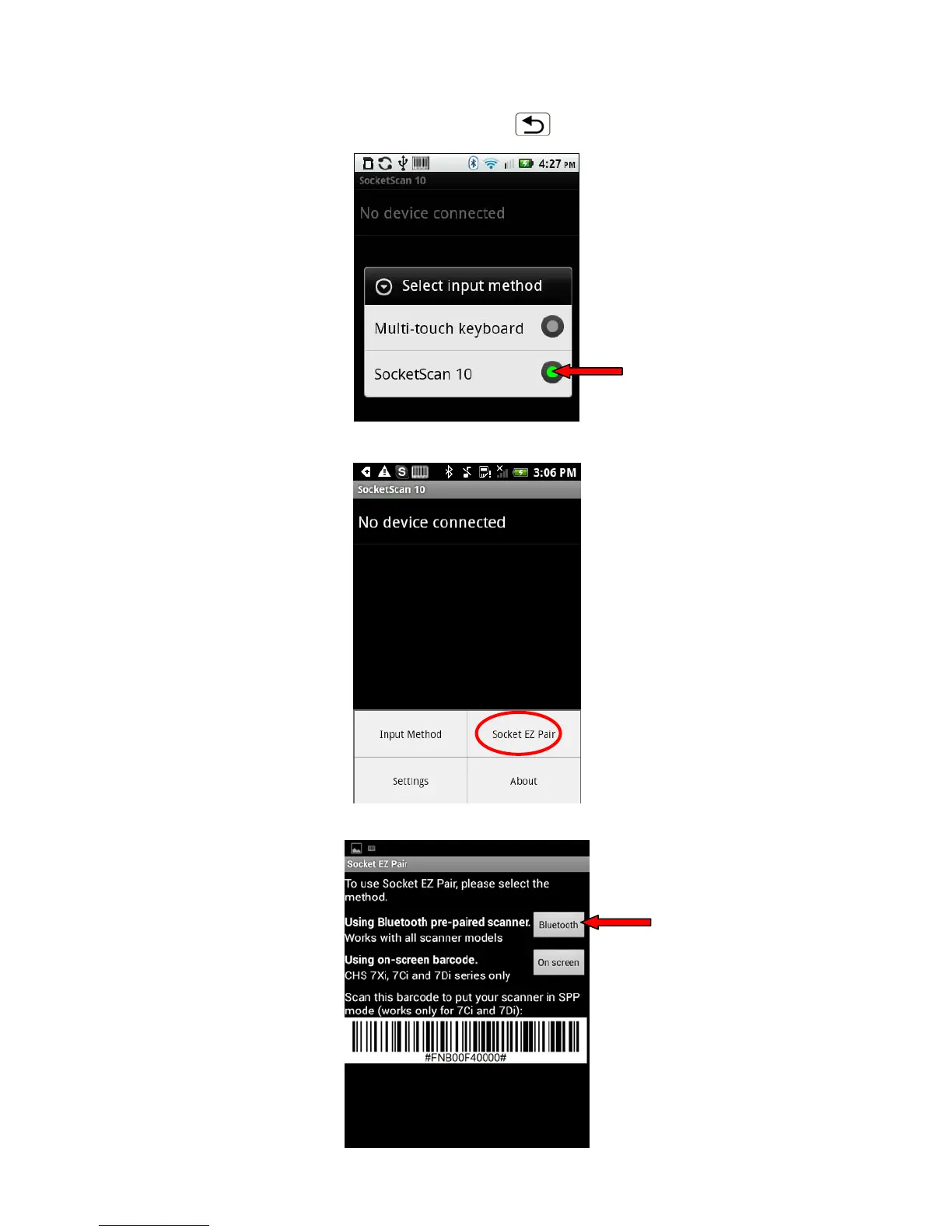 10. Make sure SocketScan 10 is selected. Touch Back