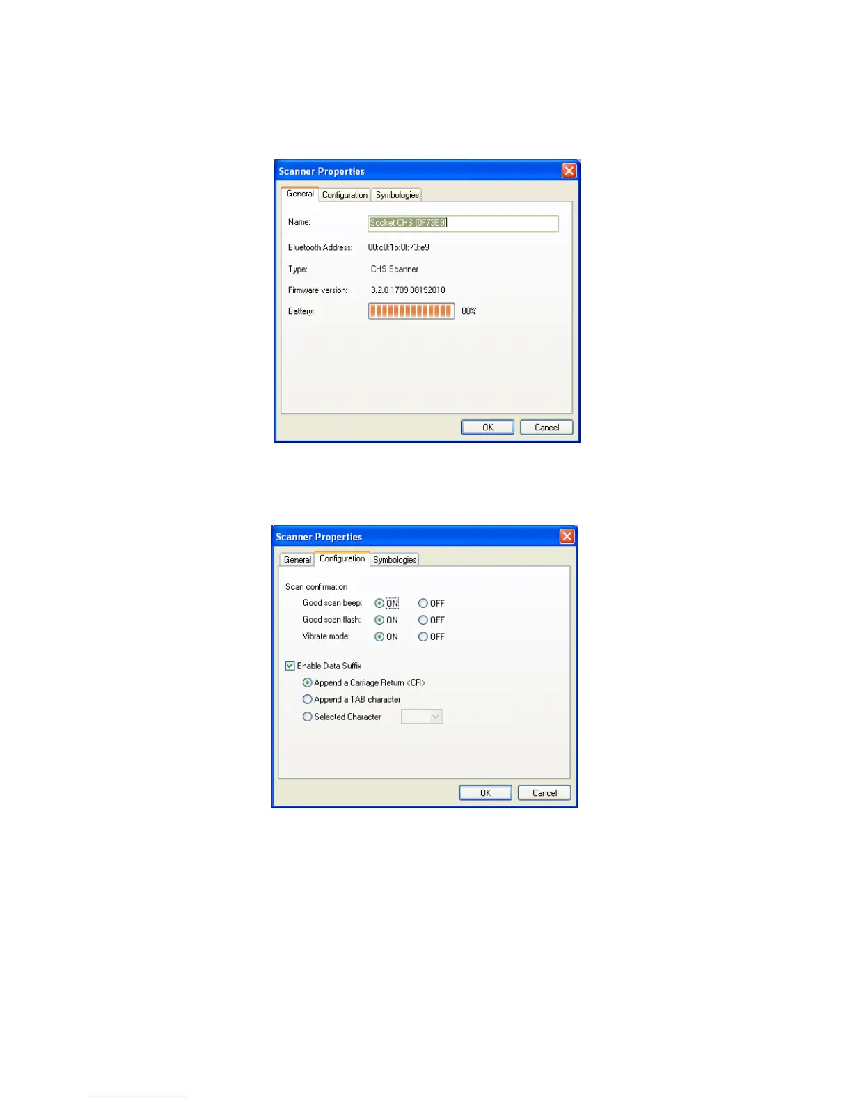 7. Click on the Configuration tab. If desired, modify how the CHS confirms a good scan