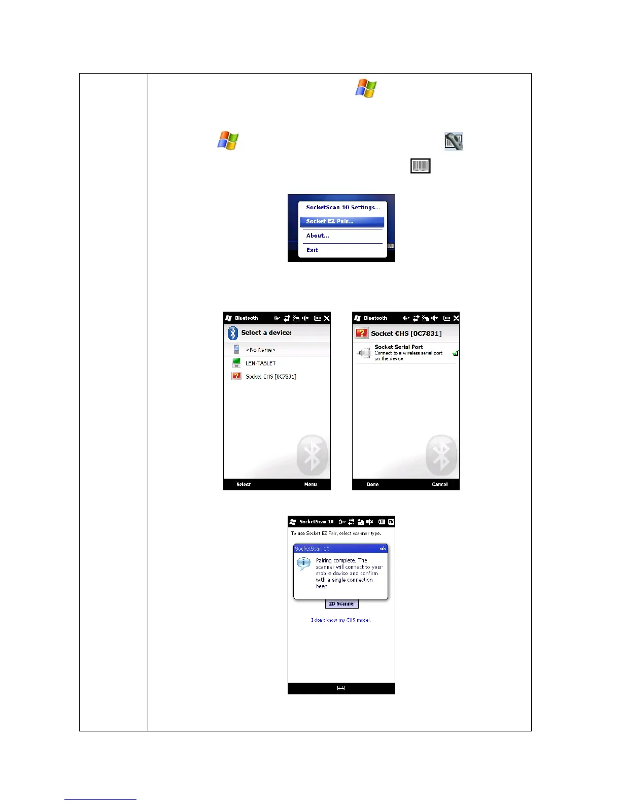 the pop-up menu, tap Socket EZ Pair. Tap 1D Scanner.