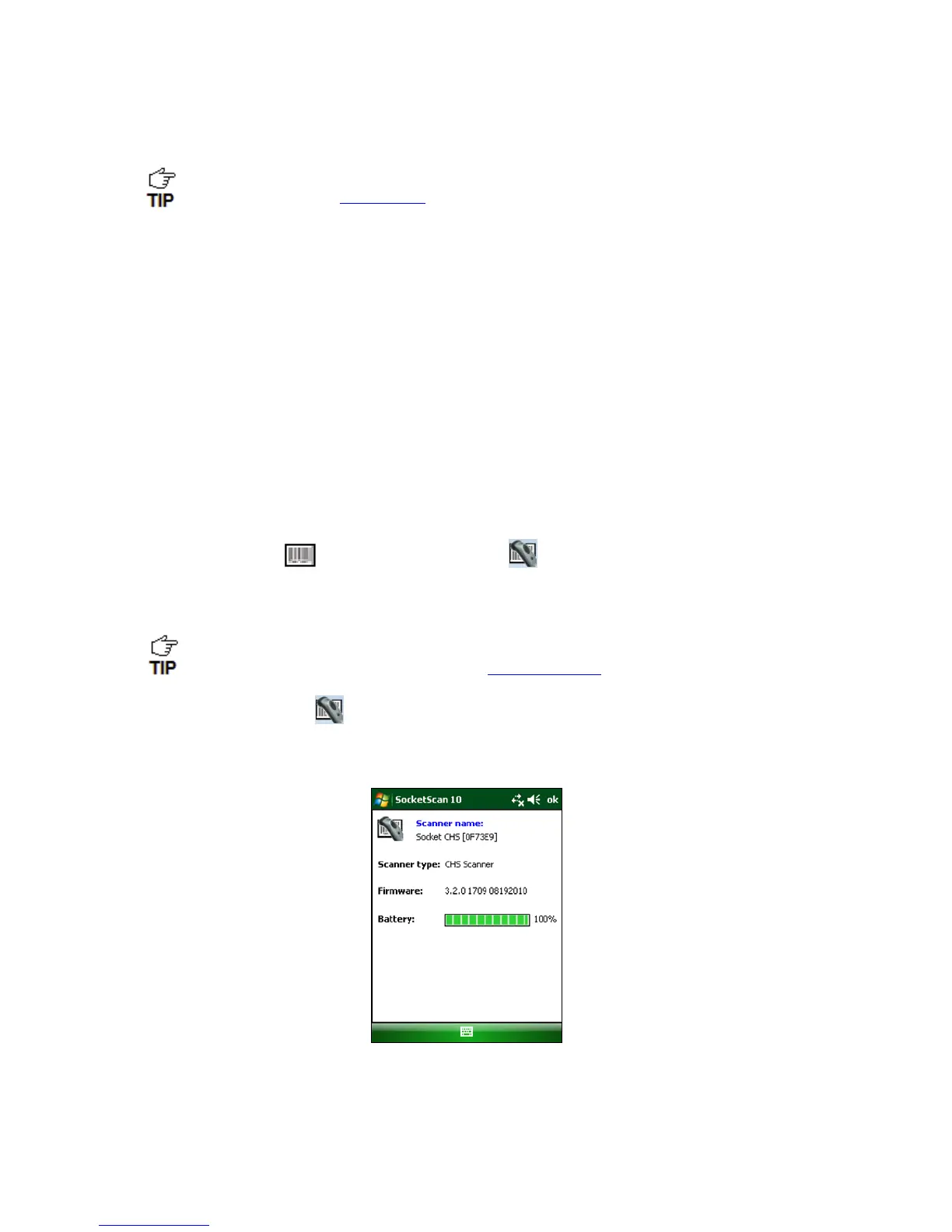 When SocketScan 10 is running, an icon that indicates the CHS connection status will appear